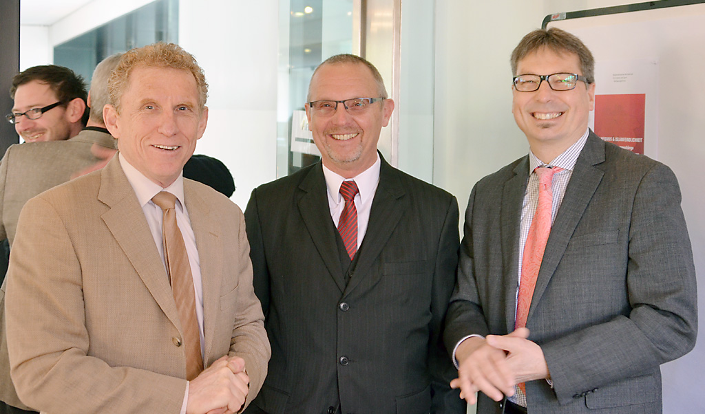 Dr. Sadiqu Al-Mousllie vom Zentralrat der Muslime in Deutschland, Dr. Michael Kiefer von der Universität Osnabrück und Vera Kleine, Referatsleiterin Islamismus im Niedersächsischen Verfassungsschutz.