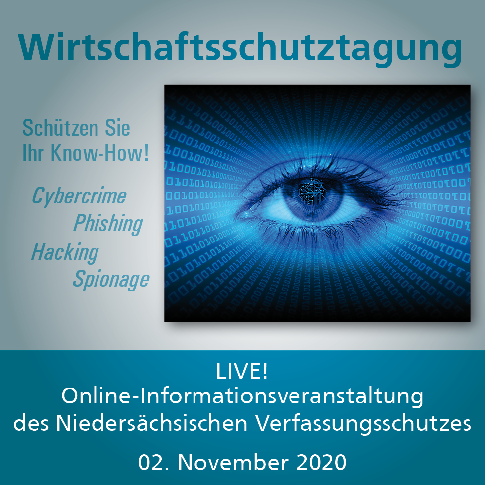 Am 2. November 2020 hat das Niedersächsische Ministerium für Inneres und Sport, Abteilung Verfassungsschutz die diesjährige Wirtschaftsschutztagung als Online-Informationsveranstaltung durchgeführt.