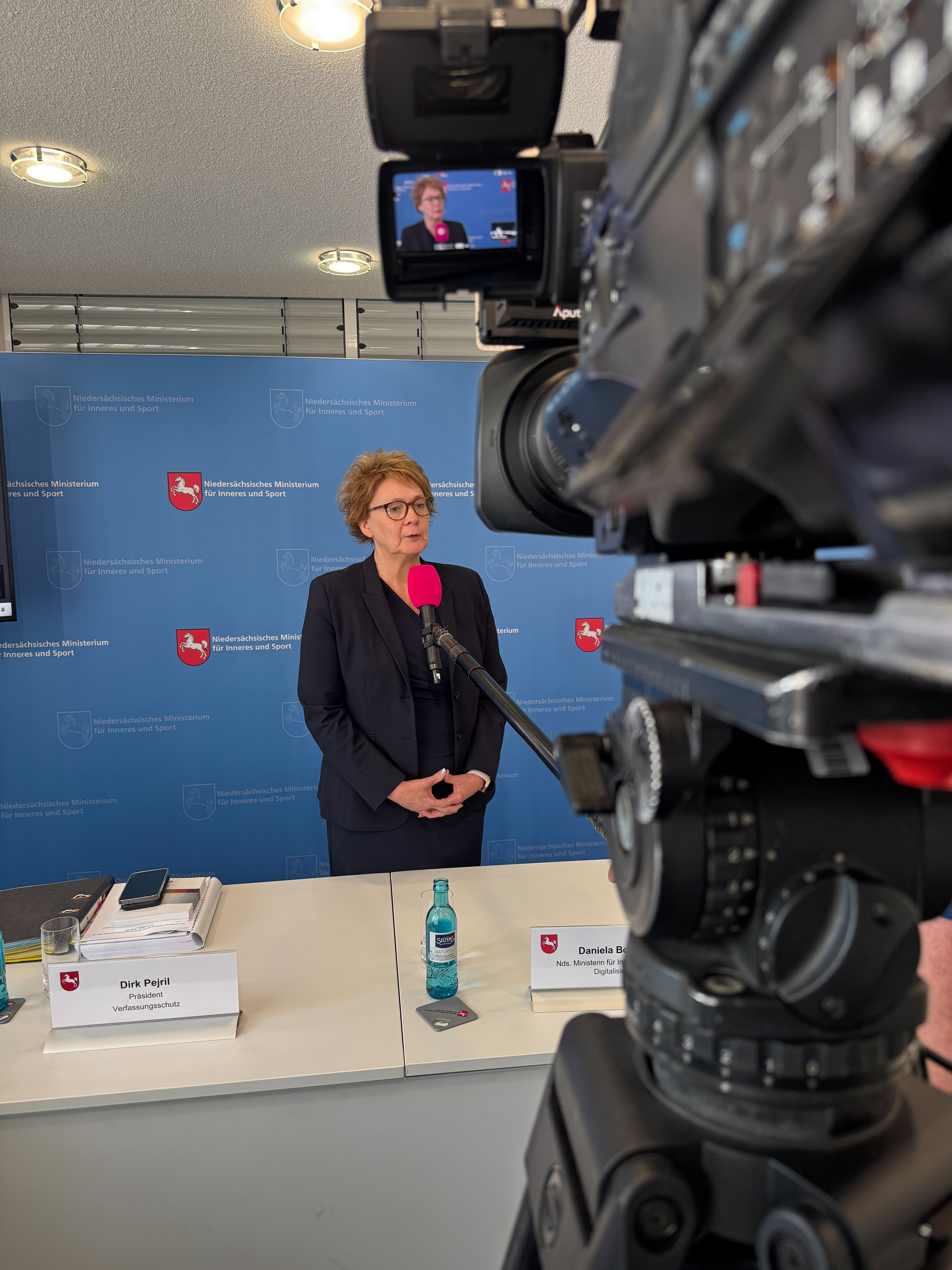 Am Donnerstag, den 19.06.2025, hat die Niedersächsische Innenministerin Daniela Behrens zusammen mit dem Verfassungsschutzpräsidenten Dirk Pejril den Niedersächsischen Verfassungsschutzbericht für das Jahr 2024 vorgestellt.