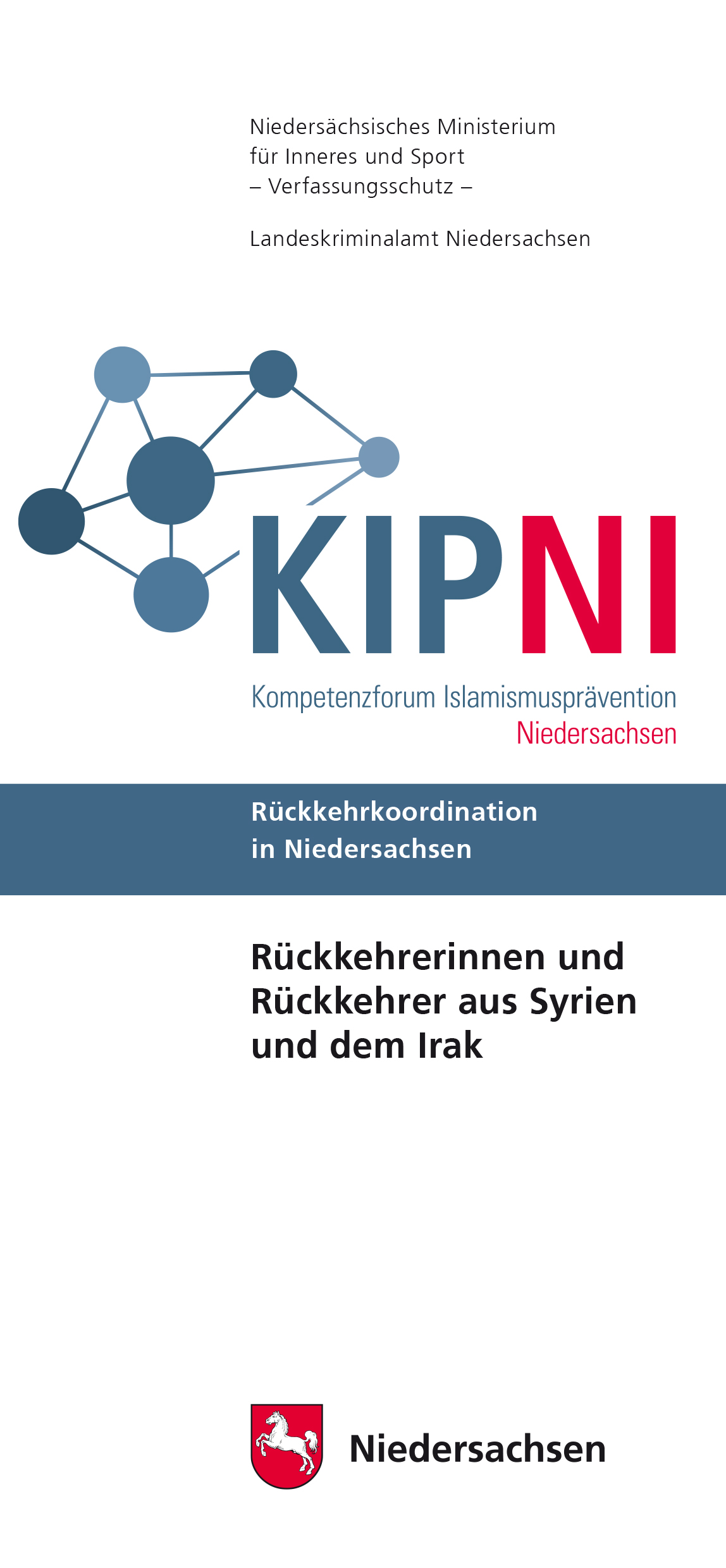 Das Kompetenzforum Islamismusprävention Nied (KIP NI) hat einen neuen Flyer veröffentlicht. Dieser Flyer informiert über die Thematik der Rückkehrerinnen und Rückkehrer aus Syrien und dem Irak, schildert die aktuelle Situation in Niedersachsen und gibt Auskunft über Ansprechpartnerinnen und Ansprechpartner.