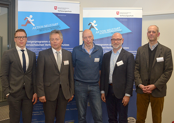 Der Niedersächsische Verfassungsschutzpräsident, Bernhard Witthaut, betonte in seinen Begrüßungsworten die wichtige Bedeutung von Aussteigerprogrammen in der Prävention. So habe das Programm „Aktion Neustart – Rechtsextremismus“ des Niedersächsischen Verfassungsschutzes seit seiner Gründung 2010 bereits mehr als hundert Fälle bearbeitet und vierzig Ausstiegswillige erfolgreich begleitet. Im 2016 gestarteten Programm „Aktion Neustart – Islamismus“ seien derzeit sechs Fälle in der aktiven Bearbeitung. Zwei Personen konnten bereits erfolgreich beim Ausstieg unterstützt werden. Auch aufgrund der zu erwartenden Rückkehrer aus den Krisengebieten in Syrien und dem Irak habe der Niedersächsische Verfassungsschutz „Aktion Neustart – Islamismus“ gerade um zwei weitere Mitarbeiter aufgestockt.