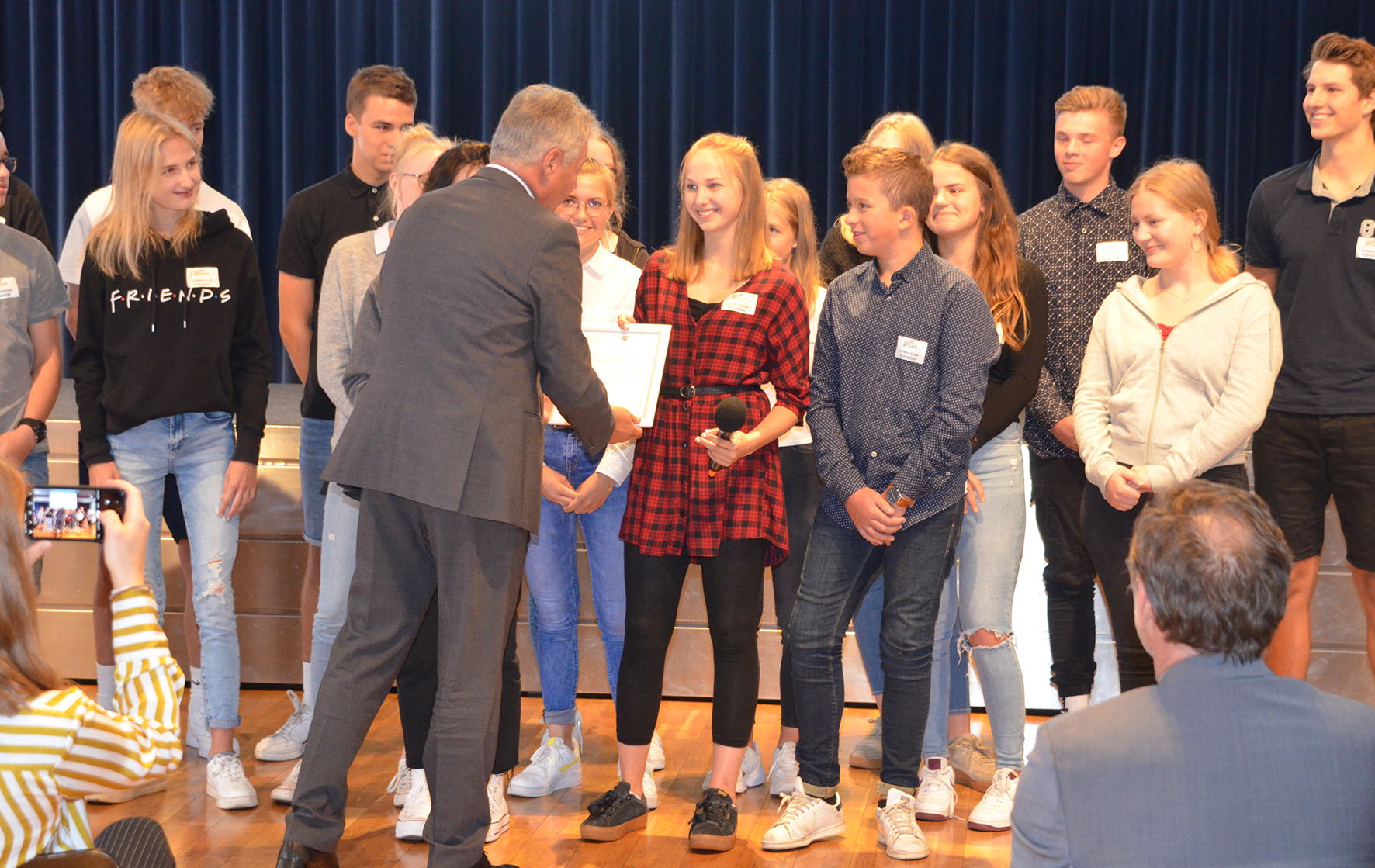 Die Musikklasse des Gymnasiums Burgdorf hat ihr selbst komponiertes Lied für echte Gemeinschaft und gegen Ausgrenzung und Extremismus vorgetragen. Dafür nahmen die Schülerinnen und Schüler den Preis für den besten Beitrag von Verfassungsschutzpräsident Bernhard Witthaut entgegen. Die Arbeiten der Berufsbildenden Schule Lingen sowie der Oberschule Lachendorf wurden im Rahmen des Symposiums ebenfalls präsentiert.