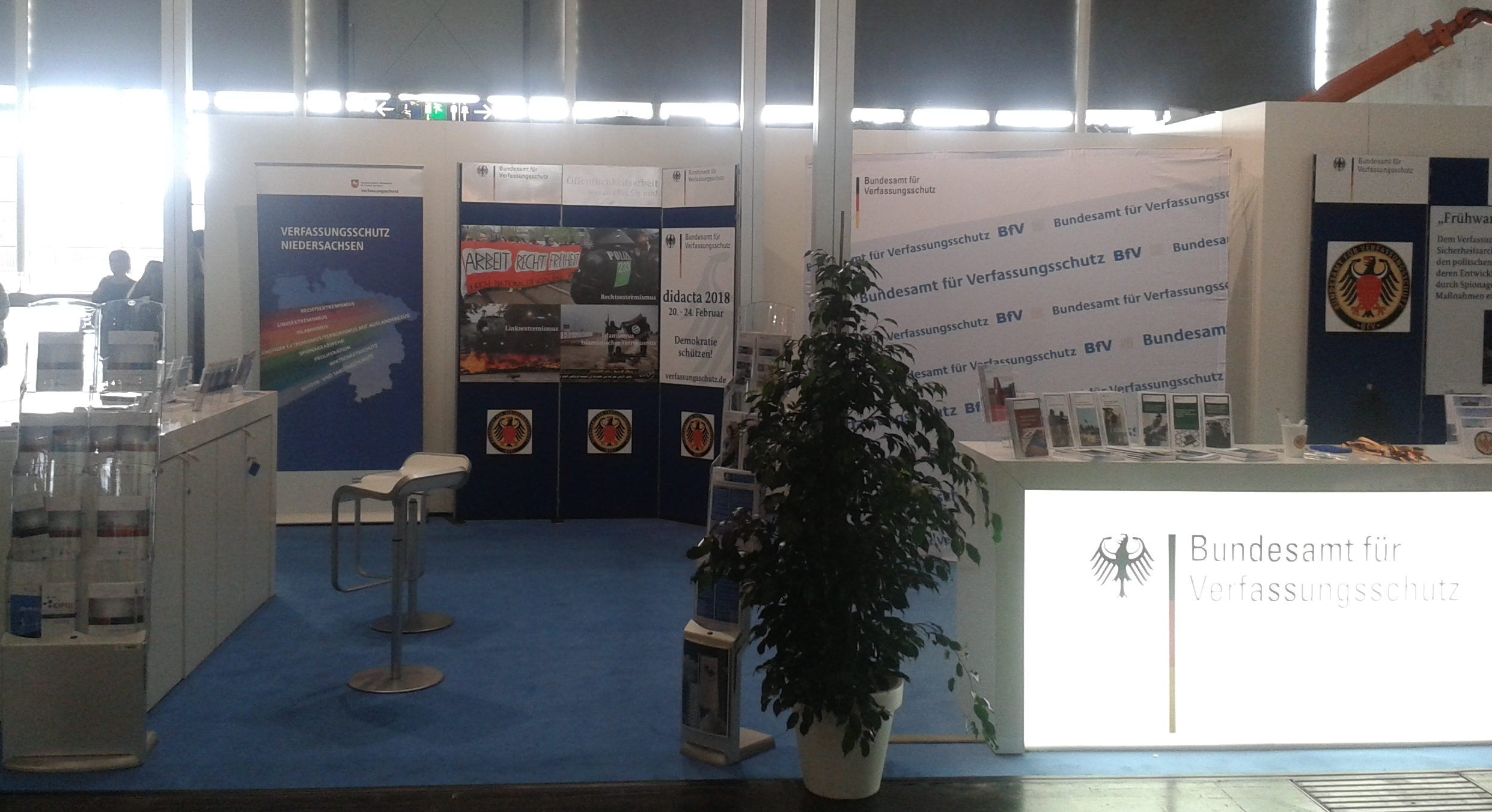Der Niedersächsische Verfassungsschutz hat sich während der didacta vom 20. – 24.02.2018 in Hannover auf dem Messestand des Bundesamtes für Verfassungsschutz präsentiert. Zahlreiche Besucherinnen und Besucher haben die Möglichkeit genutzt, sich über die Arbeit, die Aufgaben und das Angebot des Verfassungsschutzes zu informieren.