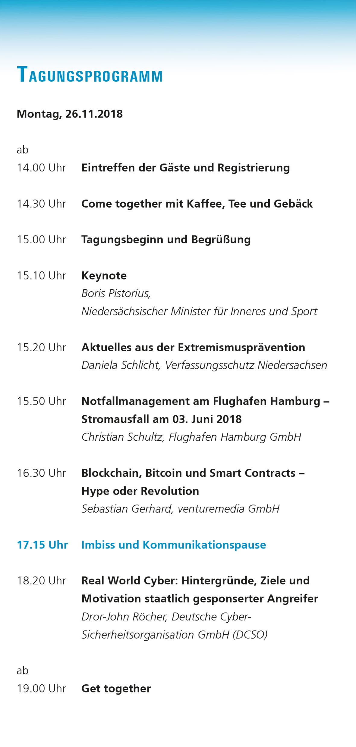 Wirtschaftsschutztagung am 26. November 2018 im Radisson Blu Hotel Hannover